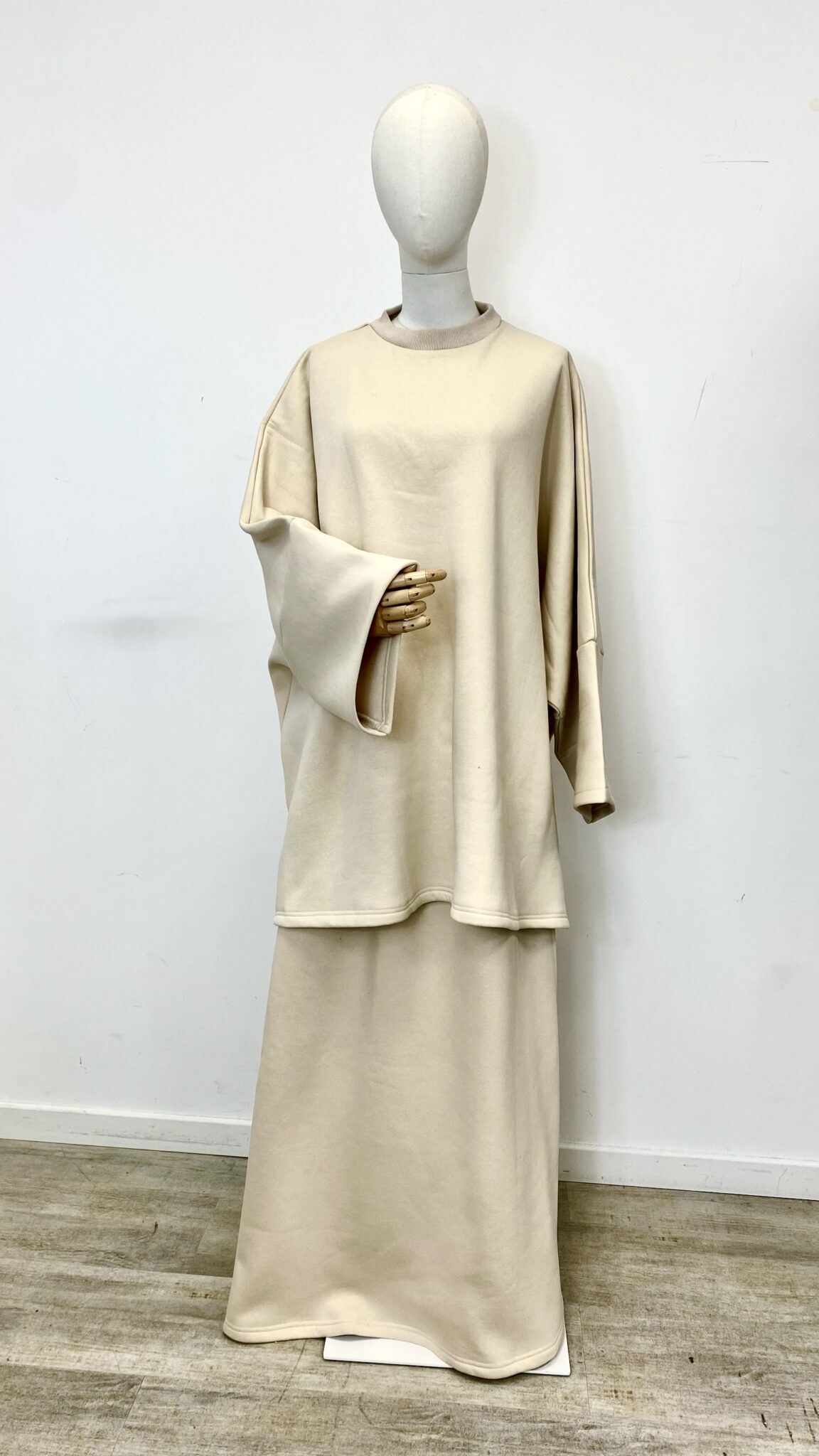 La Jupe Longue en Molleton a été pensée pour offrir une alternative chaude, pudique et confortable à la jupe longue classique Oummi Abi Moi. Confectionnée dans un molleton épais et doux, elle maintient la chaleur tout en garantissant une coupe ample, fluide et totalement non moulante. Elle se porte facilement au quotidien et accompagne parfaitement tous les hauts de la collection molleton pour une tenue ton sur ton élégante et harmonieuse.